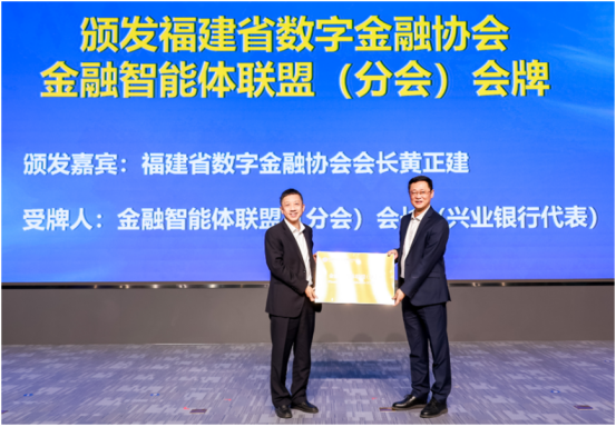 金融智能体联盟(分会)成立大会完成了所有议程。审议通过了《福建省数字金融协会金融智能体联盟(分会)组织规程》。选举出了金融智能体联盟(分会)理事单位、监事单位、会长单位、副会长单位、监事长单位以及秘书长。协会监事长陈伟教授宣布了此次选举过程合规所有选举有效。会议最后颁发了福建省数字金融协会金融智能体联盟(分会)会牌,当选会长单位兴业银行代表发表就职演讲。